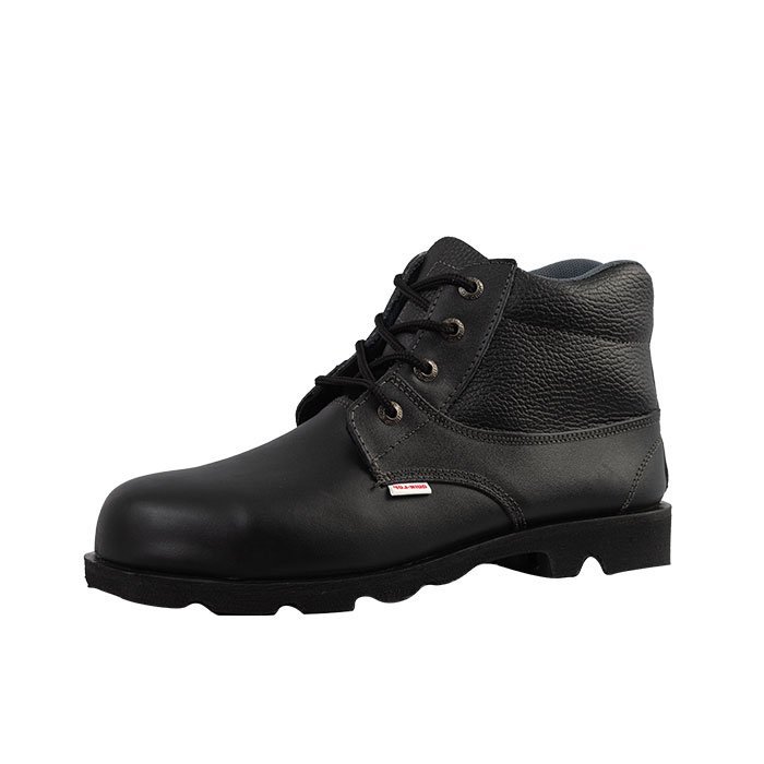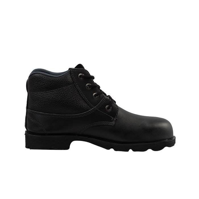 Bota en cuero de 6″ de alto, con puntera de proteccion, para uso general, ideal para la construccion, talleres de mecanica y metalisteria, bodegas de cargue y descargue; y trabajo donde exista peligro de caida de objetos pesados.