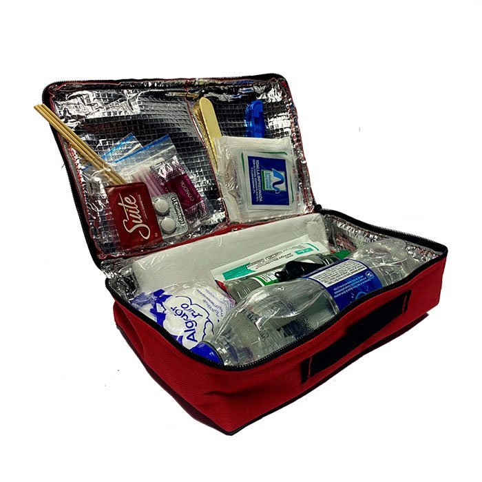 Botiquín de primeros auxilios térmico portátil de fácil agarre. Fabricado en lona color rojo, su interior térmico brinda a los 18 elementos protección a las temperaturas. Este botiquín es recomendado para vehículos motorizados y brigadista.