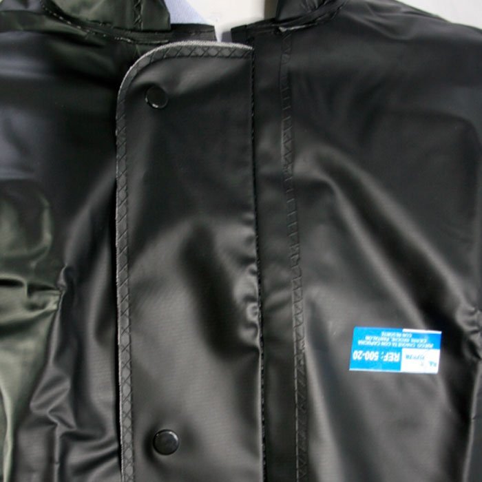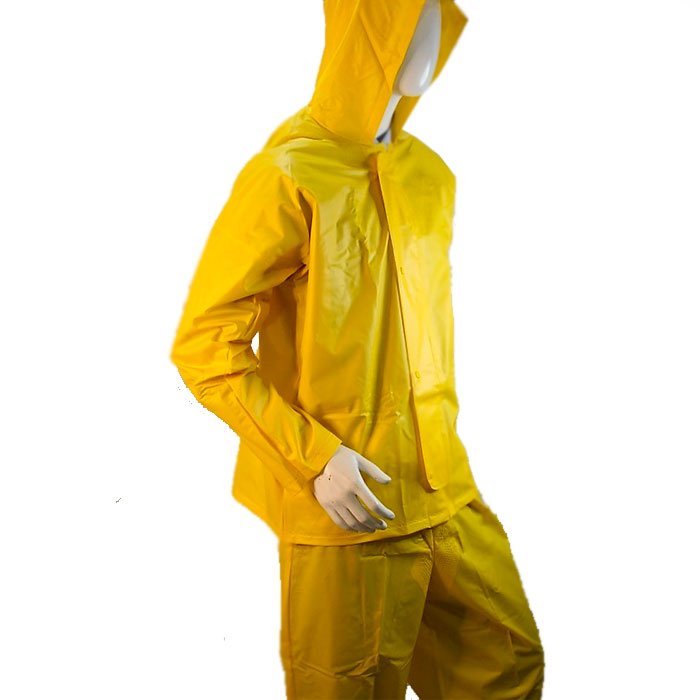 Conjunto impermeable de Chaqueta y Pantalón, para Protección contra la lluvia. Permite una mejor movilidad, para persona que requieren hacer operación de levantamiento de carga en condiciones lluviosas. Ideal para Personas que realizan operaciones Agrícolas o ganaderas expuestas a la intemperie.