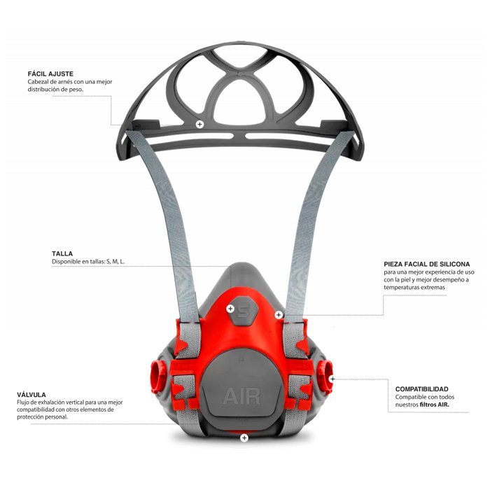 Respirador de medio rostro AIR, con sello facial en silicona.